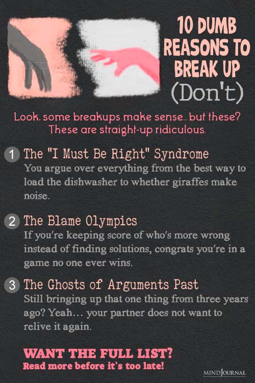 But these all are dumb reasons to break up or end an otherwise perfectly good relationship.