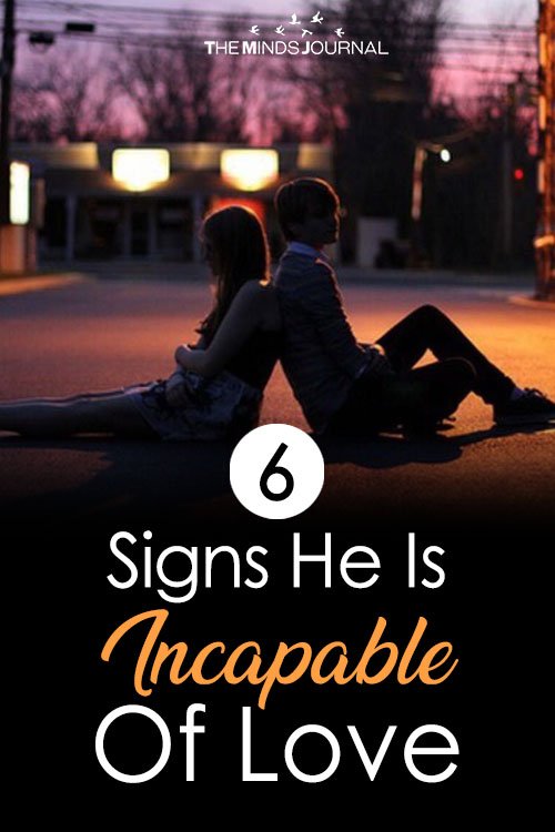 Are fairytales and romance novels to blame? Perhaps it’s an issue from the past. Is it possible some people are incapable of love? The following is a list of six signs he is incapable of love!