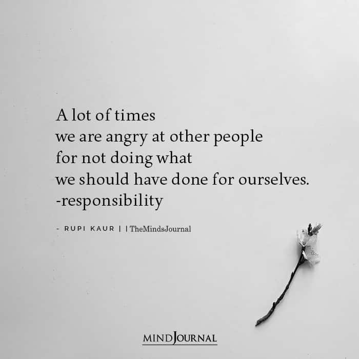 A lot of times we are angry at other people for not doing what we should have done for ourselves. -responsibility