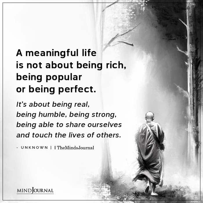 A meaningful life is not about being rich, being popular or being perfect. It’s about being real, being humble, being strong, being able to share ourselves and touch the lives of others.