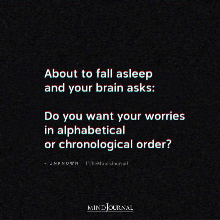 About to fall asleep and your brain asks: Do you want your worries in alphabetical or chronological order?
