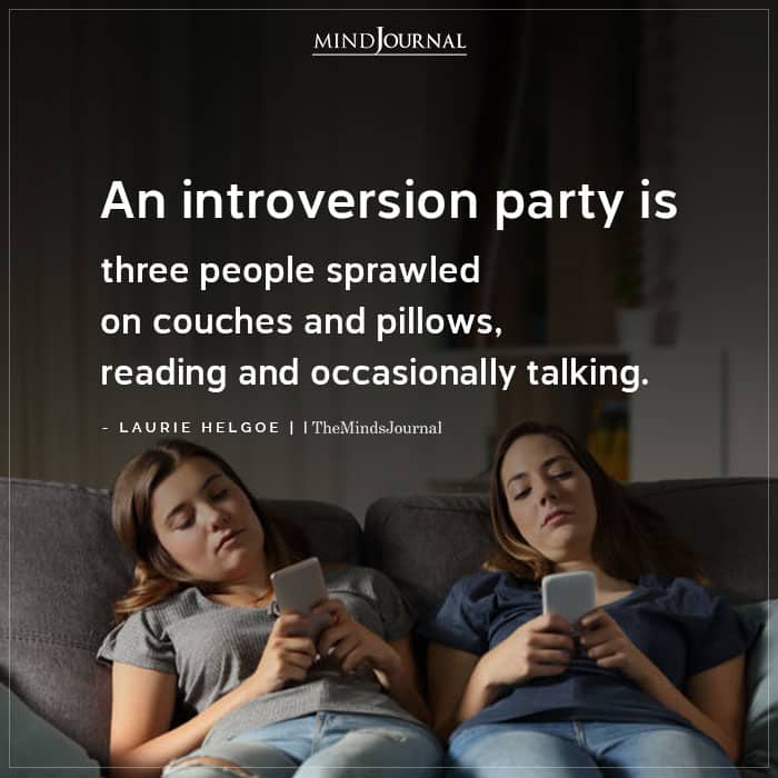 An introversion party is three people sprawled on couches and pillows, reading and occasionally talking.