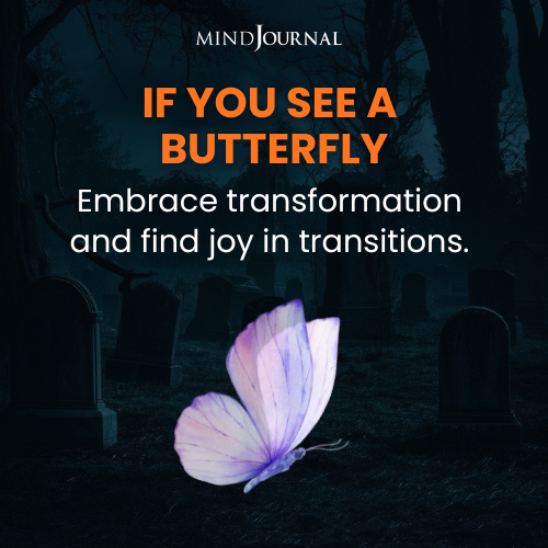 Butterflies are vulnerable representations of transformation and growth. It is a sign that change is coming, usually in a positive or gentle way, when one flutters across your path. For example, when you think about a challenge, seeing a butterfly might suggest that, you need to let it go in order for it to grow.