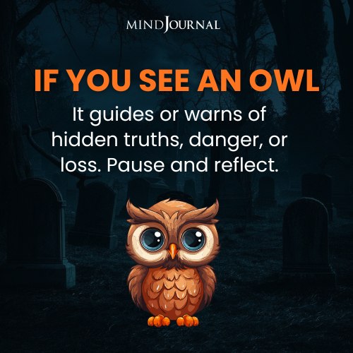 Seeing an owl while making a major life decision could be a nudge from the universe to pause, and reconsider your choices. But in some cultures, a white owl is seen as a positive omen, as it provides guidance and protection, while a black owl may signal danger, loss, illness, or even death.