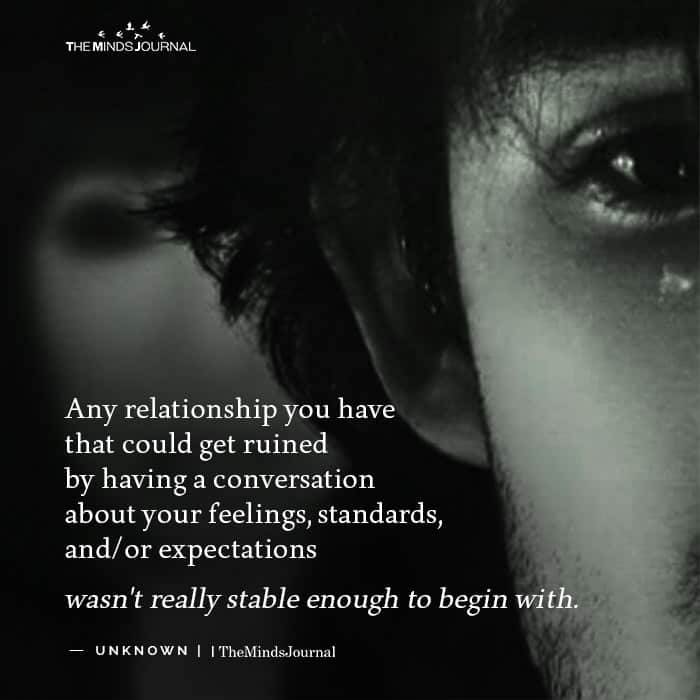 Any relationship you have that could get ruined by having a conversation about your feelings, standards, and/or expectations wasn’t really stable enough to begin with.