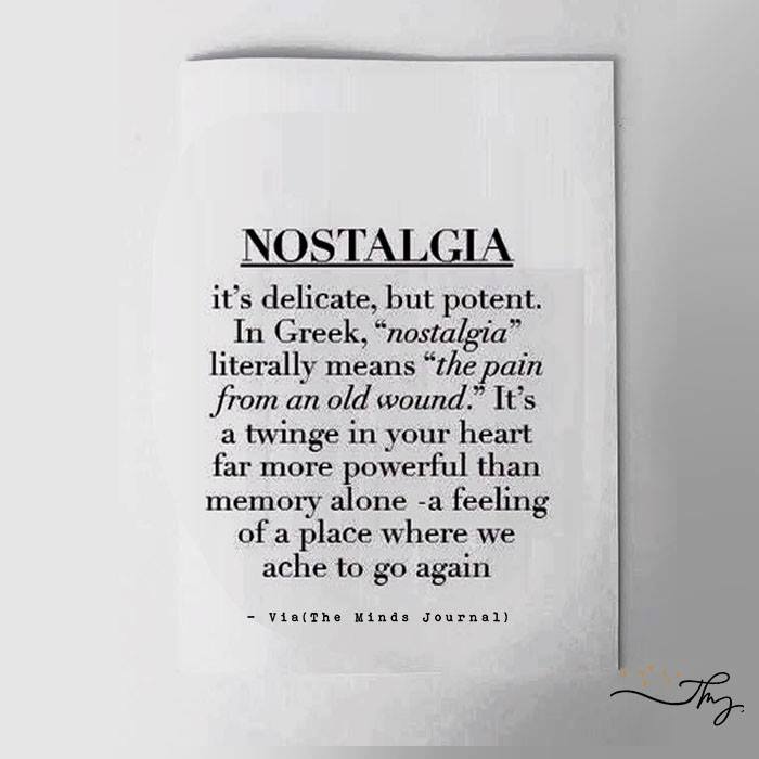 Nostalgia is mostly a positive emotional experience that involves reflections on cherished memories (weddings, graduations, holiday celebrations, and vacations). And provides numerous psychological benefits.