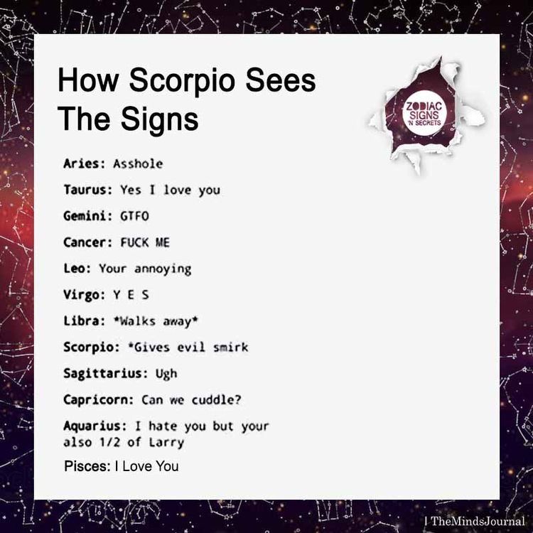 Scorpios donโt smile openly when flirting. Instead, they smirk a lot in a sexy sly way. They can also be very territorial in love as they donโt prefer sharing what they like. They will be controlling, yet cuddly and affectionate.