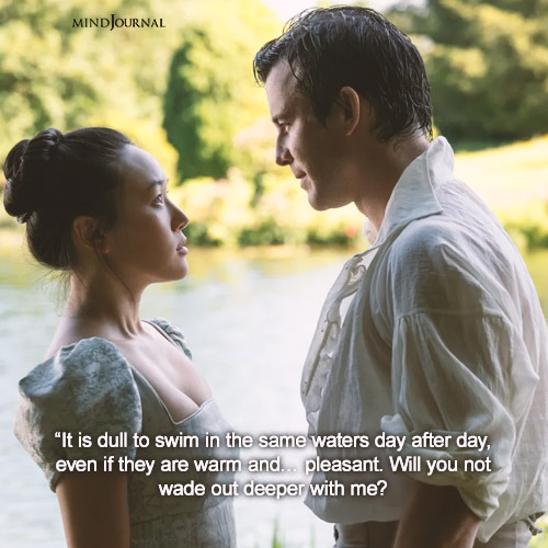 This deceptively soft line reflects the comfort of emotional safety. Among romantic Bridgerton quotes, it captures a universal truth: staying where itโs comfortable often feels easier than risking heartbreak.