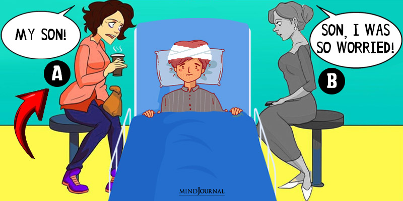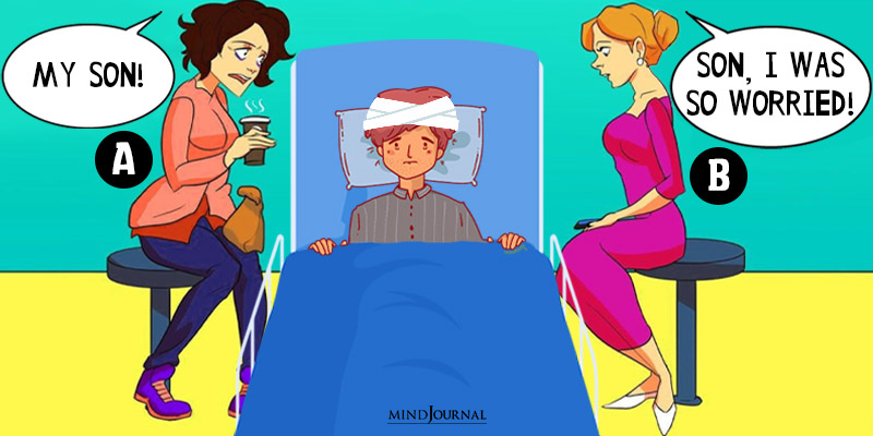 A young boy lies in a hospital bed, and two women on both his sides, labeled A and B standing beside him. Both of these women claim to be his mother. But only one is telling the truth. Who do you think it is?