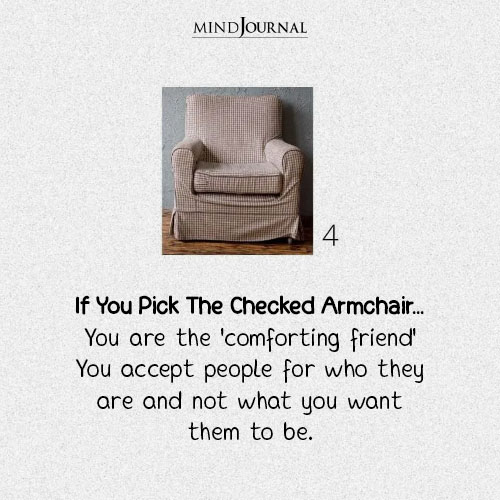 If you were told to pick a chair and you chose this, then it reveals that you might be the ‘controlling friend’. You like to lead, direct, and sometimes even dominate conversations or group dynamics. Having a strong presence means that people naturally look up to you, but your intensity often takes over making you bossy.