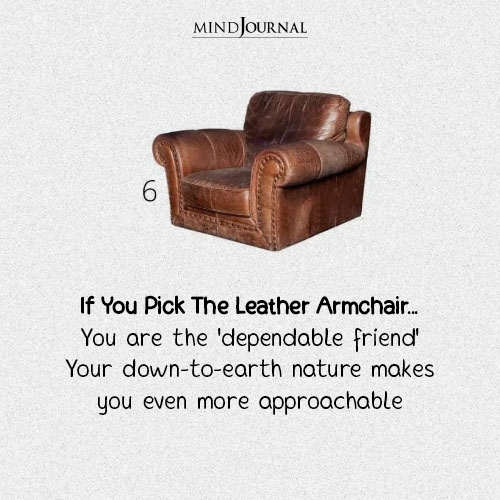 If you chose this chair, you are the ‘dependable friend’. You’re someone others can put their blind faith in, because they know you will stand by your word. Your down-to-earth nature makes you even more approachable, knowing they can always count on you.