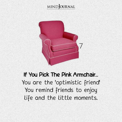 Choosing this chair means you are the ‘optimistic friend’. You bring joy, positivity, and fun into your friendships. People love being around you because you make life brighter and lighter, even in difficult moments.