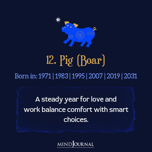 12. Pig (Boar) Born in: 1971, 1983, 1995, 2007, 2019, 2031