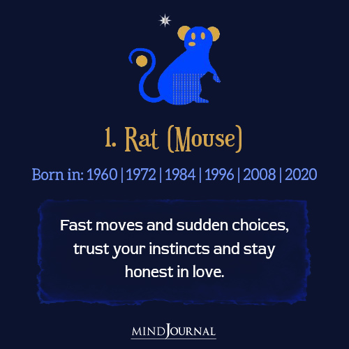 1. Rat (Mouse) Born in: 1960, 1972, 1984, 1996, 2008, 2020