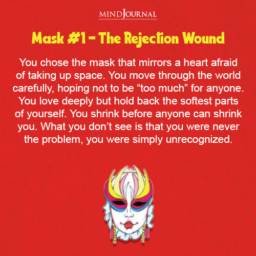 You chose the mask that looks like it’s trying so hard not to feel too loud or too quiet. That’s how people with rejection wounds move through the world – carefully, quietly, hoping their presence doesn’t become “too much” for someone they love.