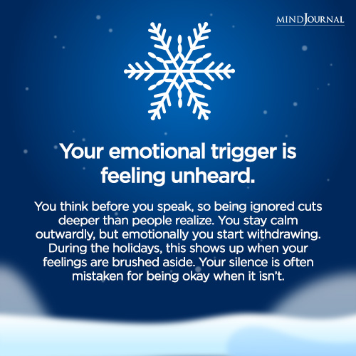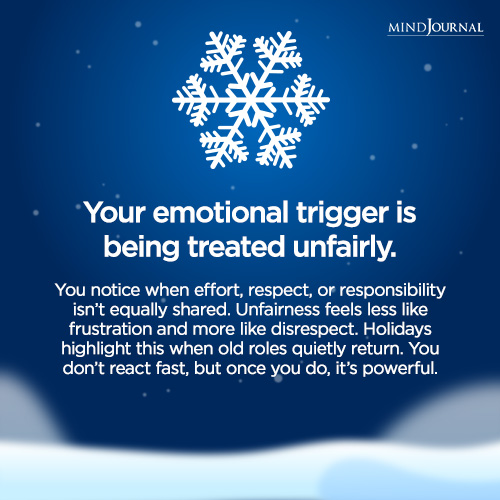 Christmas tends to highlight this trigger because roles often resurface. Who always compromises. Who gets criticized. Who carries the emotional labor. You may find yourself doing more, adjusting more, and being expected to stay calm about it.