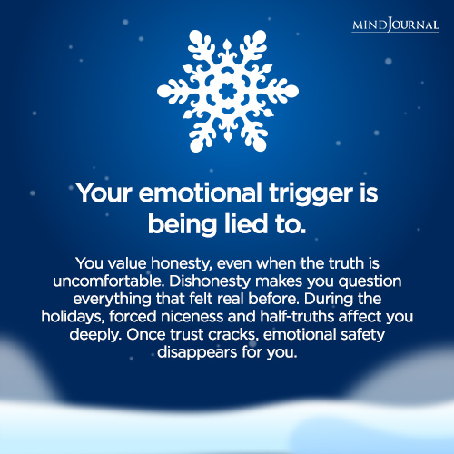 During Christmas, this trigger shows up in subtle ways. Fake niceness. Forced apologies. Conversations that feel scripted instead of real. You can sense when something is off, and when someone denies it, that disconnect messes with you emotionally.