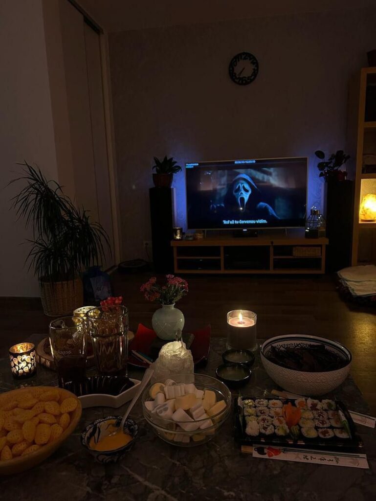 Coordinate your snacks and outfits with the theme. Think flavored popcorn, soda in glass bottles, cozy pajamas, or even costumes if you’re feeling adventurous. These details elevate an ordinary night into something special.