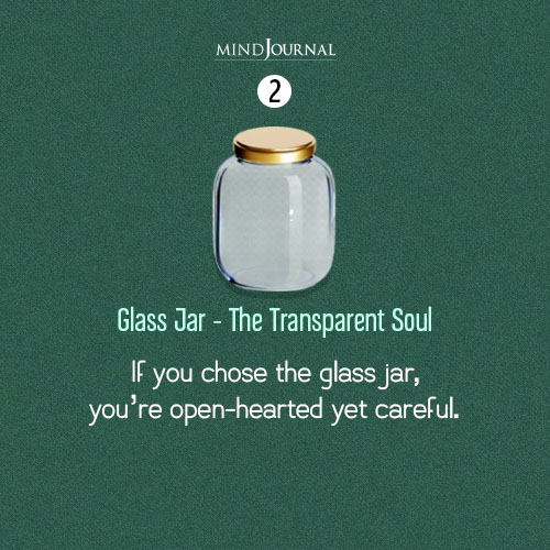 If you chose the glass jar, youโre someone who is open-hearted yet careful. The jar symbolizes your emotional transparency, you let people see in, but only as much as you allow. So, youโre not afraid to show what you feel, but you maintain boundaries to protect your energy.