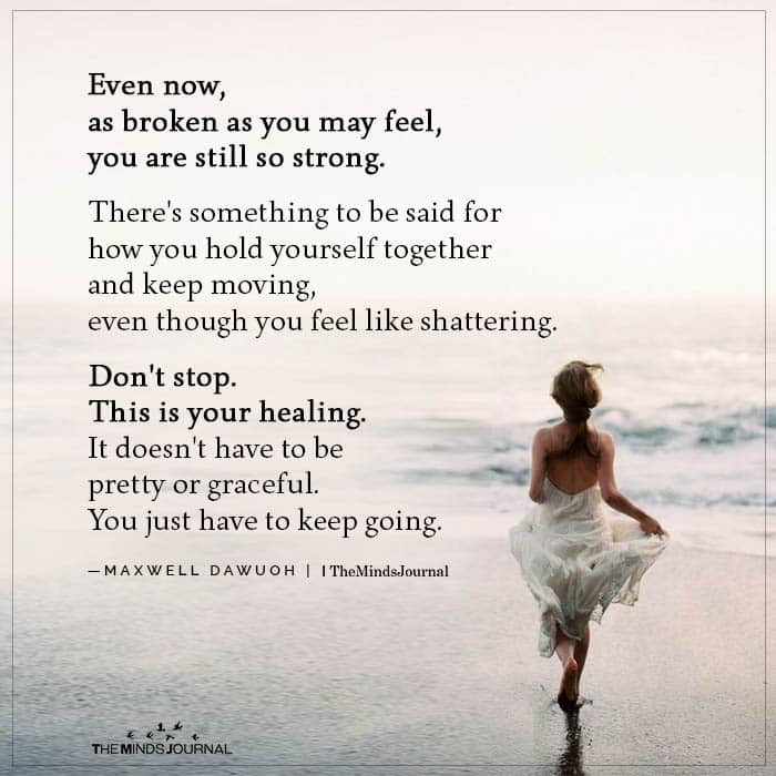 Even now, as broken as you may feel, you are still so strong. There’s something to be said for how you hold yourself together and keep moving, even though you feel like shattering.