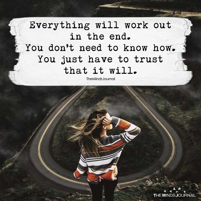 Everything will work out in the end. You don’t need to know how. You just have to trust that it will.