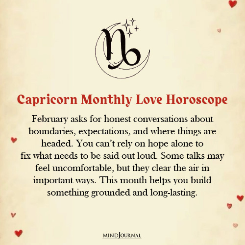February asks you to get very real about what you want, Capricorn. That means talking about boundaries, expectations, and where things are actually headed, not just hoping it all sorts itself out.