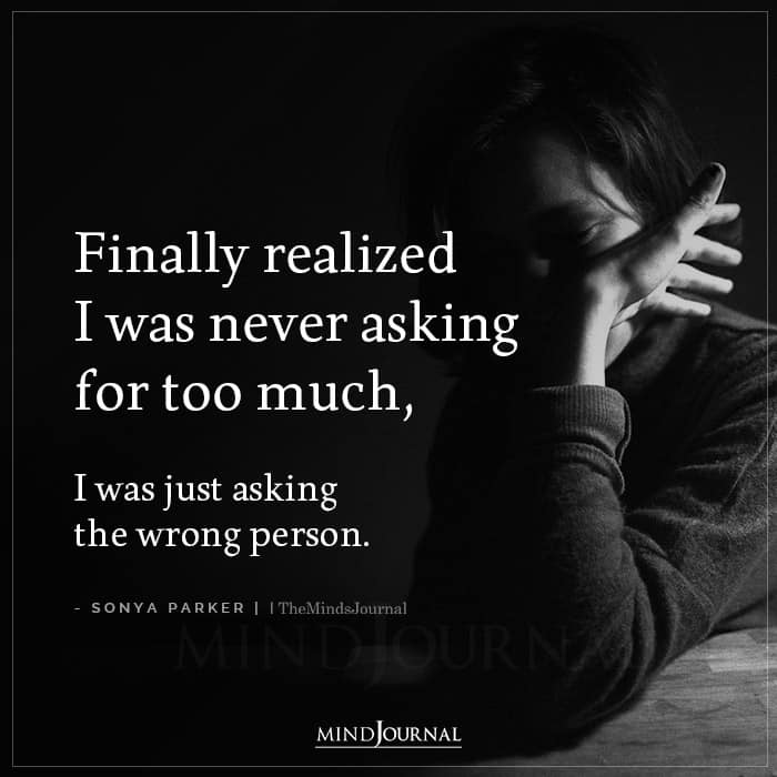 Finally realized I was never asking for too much, I was just asking the wrong person.
