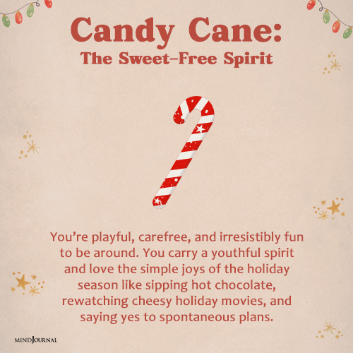 If, out of all the Christmas decorations, the candy cane made your heart instantly happy, then you’re playful, carefree, and irresistibly fun to be around. You carry a youthful spirit and love the simple joys of the holiday season like sipping hot chocolate, rewatching cheesy holiday movies, and saying yes to spontaneous plans.