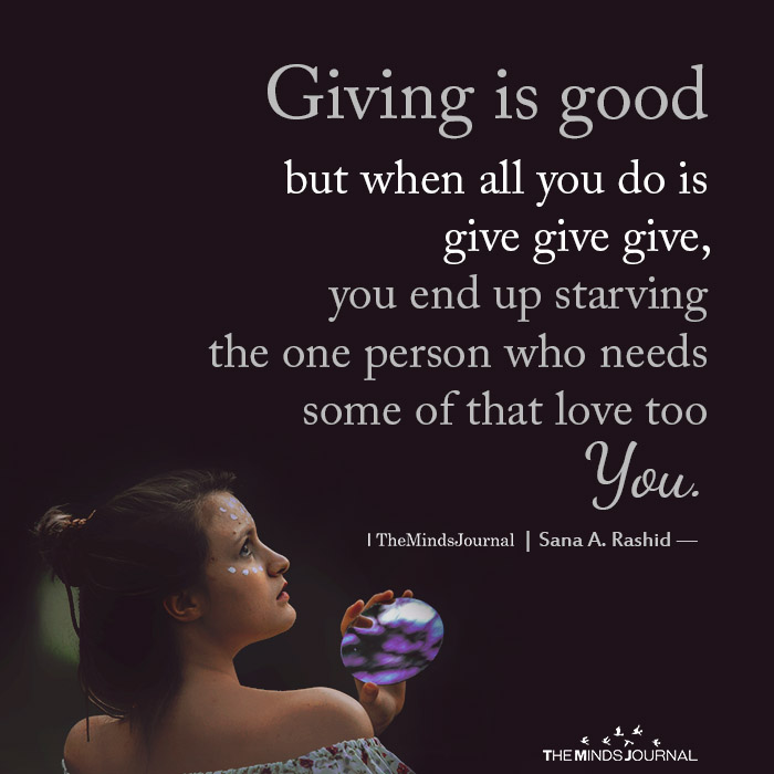 Giving is good but when all you do is give give give, you end up starving the one person who needs some of that love too. You.