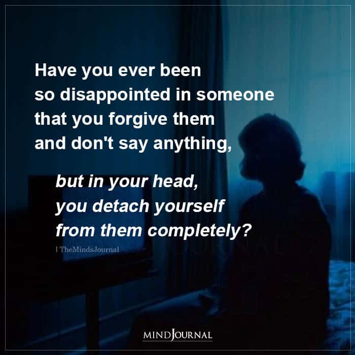 Have you ever been so disappointed in someone that you forgive them and don’t say anything, but in your head, you detach yourself from them completely?
