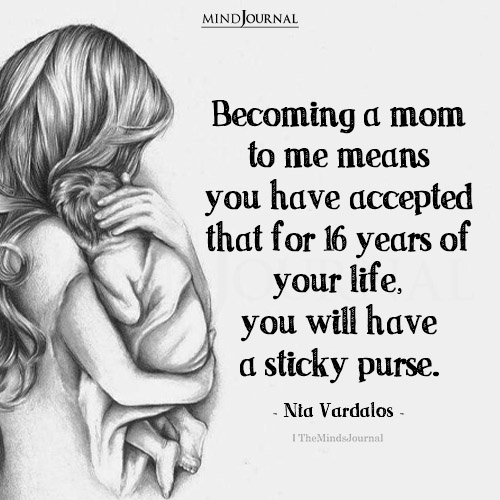 3. “Becoming a mom to me means you have accepted that for 16 years of your life, you will have a sticky purse.” – Nia Vardalos