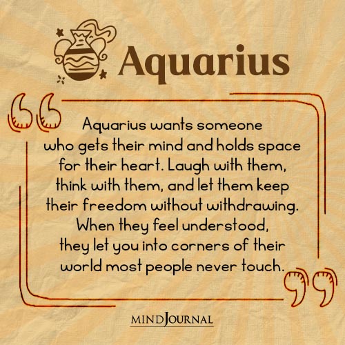 Aquarius wants someone who matches their inner world, you know someone who can laugh with them, think with them, and explore the strange corners of life without judgment? Their zodiac signs love language is emotional intellect paired with silliness.
