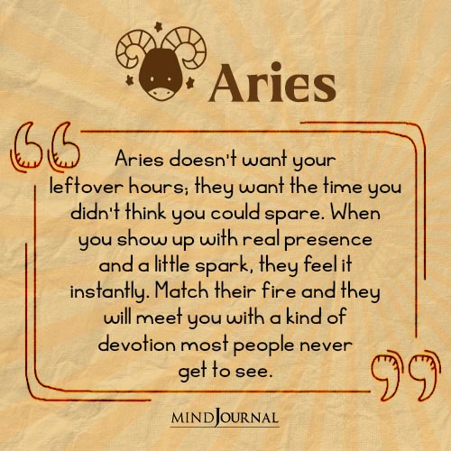 Aries wants your time, like real time, not the distracted kind. They feel special when you carve out hours you didnโt โhaveโ and give it to them like a gift.