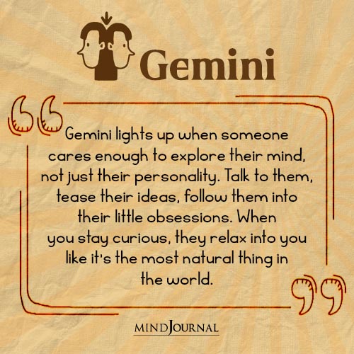 Their zodiac signs love language is stimulation; their heart opens when someone participates in their inner world. For Gemini, curiosity is care, and care is everything for them.
