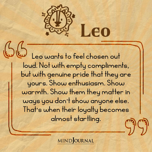 When it comes to zodiac signs and relationships, understand that Leo wants admiration paired with sincerity. Their zodiac signs love language is glamor with heart. But donโt forget: Leo also melts at the small things.