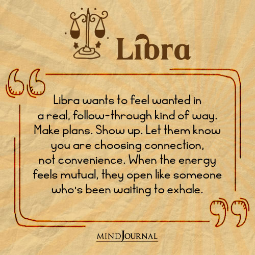 Libra wants to feel wanted, not just in theory, but in practice. Invite them out. Make plans. Show genuine interest in spending time together, even on ordinary days.