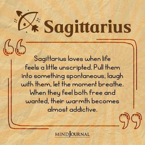 And Sagittarius in love becomes vibrant and generous when they feel excitement, novelty, and emotional openness from their partner.