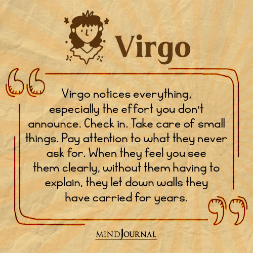 Virgo is simple in need but deep in emotion. Ask them if they have eaten. Notice their routines. Check in about the little things they never say out loud. Virgos donโt ask for much, but they feel everything.