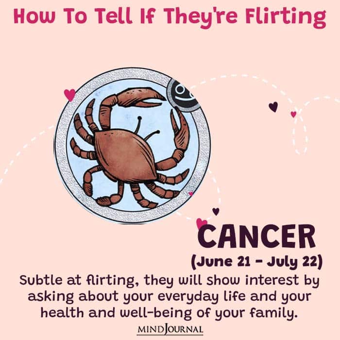Far more subtle at flirting, they will show interest by asking about your everyday life and your health, the well-being of your mother, father, sister, and brotherโฆ