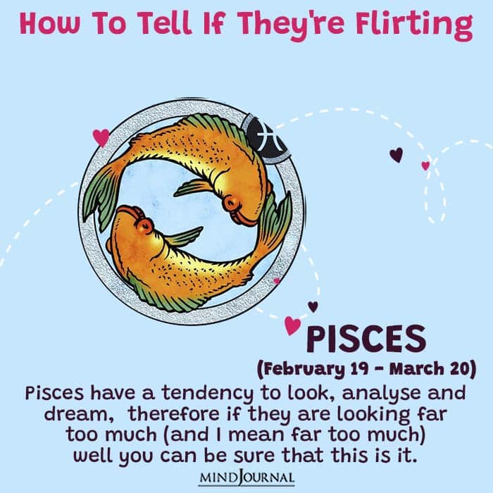 Pisces have a tendency to look and analyze and dream. Therefore, if they are looking far too much (and I mean far โฆ far too much) well you can be sure that this is it. (Find out more about the Erogenous Zones of Pisces and how to turn them on!)