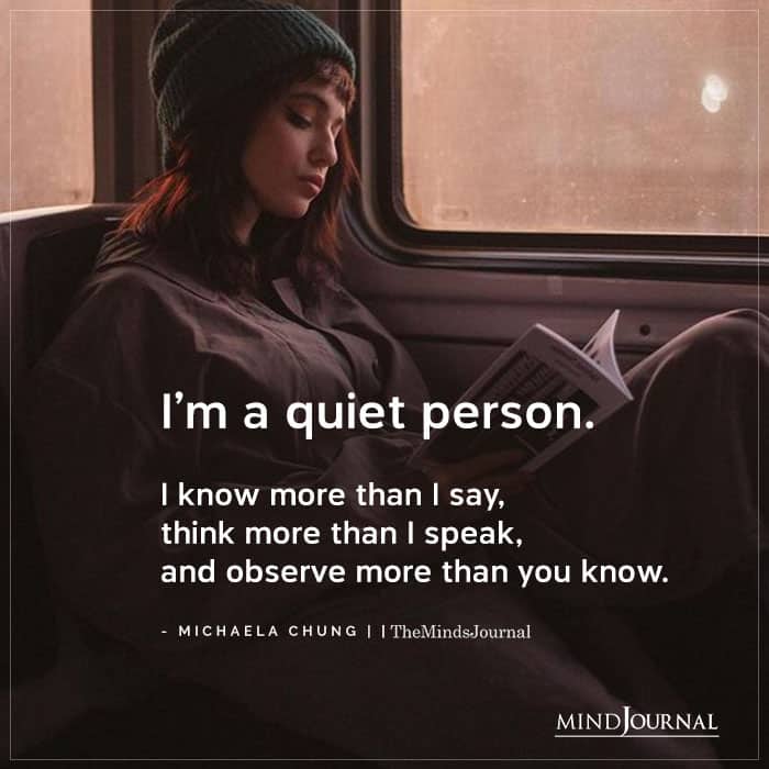 I’m a quiet person. I know more than I say, think more than I speak, and observe more than you know.