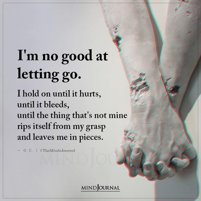 I’m no good at letting go. I hold on until it hurts, until it bleeds, until the thing that’s not mine rips itself from my grasp and leaves me in pieces.