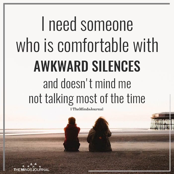 I need someone who is comfortable with awkward silences and doesn’t mind me not talking most of the time.