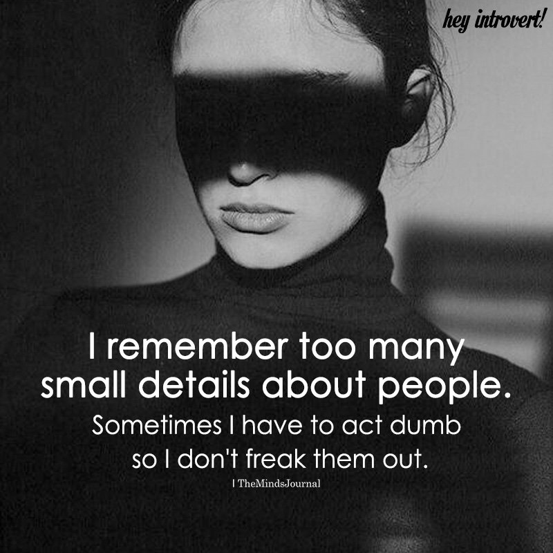 I remember too many small details about people. Sometimes I have to act dumb so I don’t freak them out.