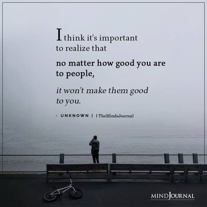 I think it’s important to realize that no matter how good you are to people, it won’t make them good to you.