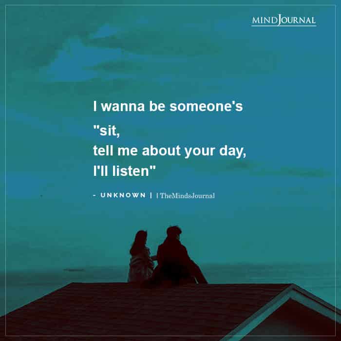 I wanna be someone’s “sit, tell me about your day, I’ll listen”
