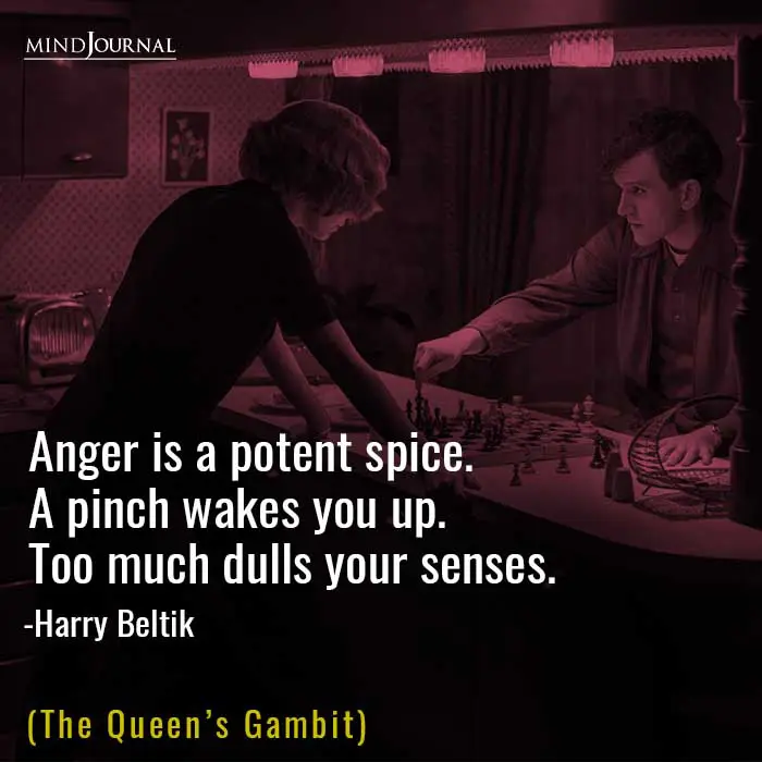 52. “Anger is a potent spice. A pinch wakes you up. Too much dulls your senses.” – The Queen’s Gambit
