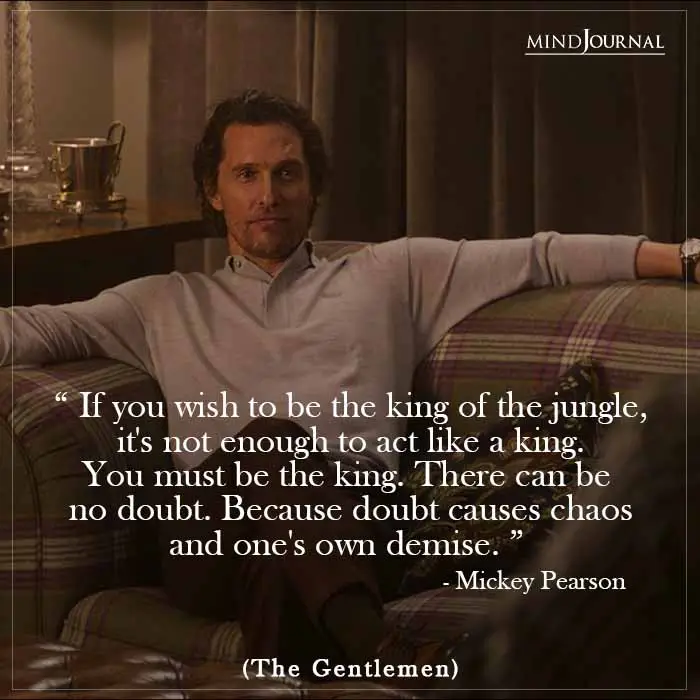 25. “If you wish to be the king of the jungle, it’s not enough to act like a king. You must be the king. There can be no doubt. Because doubt causes chaos and one’s own demise.” – The Gentlemen