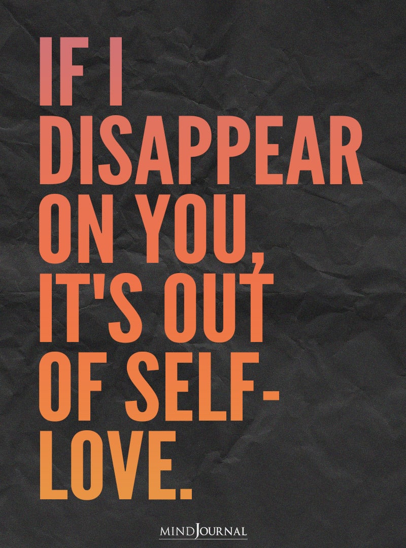 If I disappear on you, it’s out of self love.