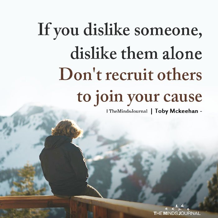 If you dislike someone, dislike them alone Don’t recruit others to join your cause